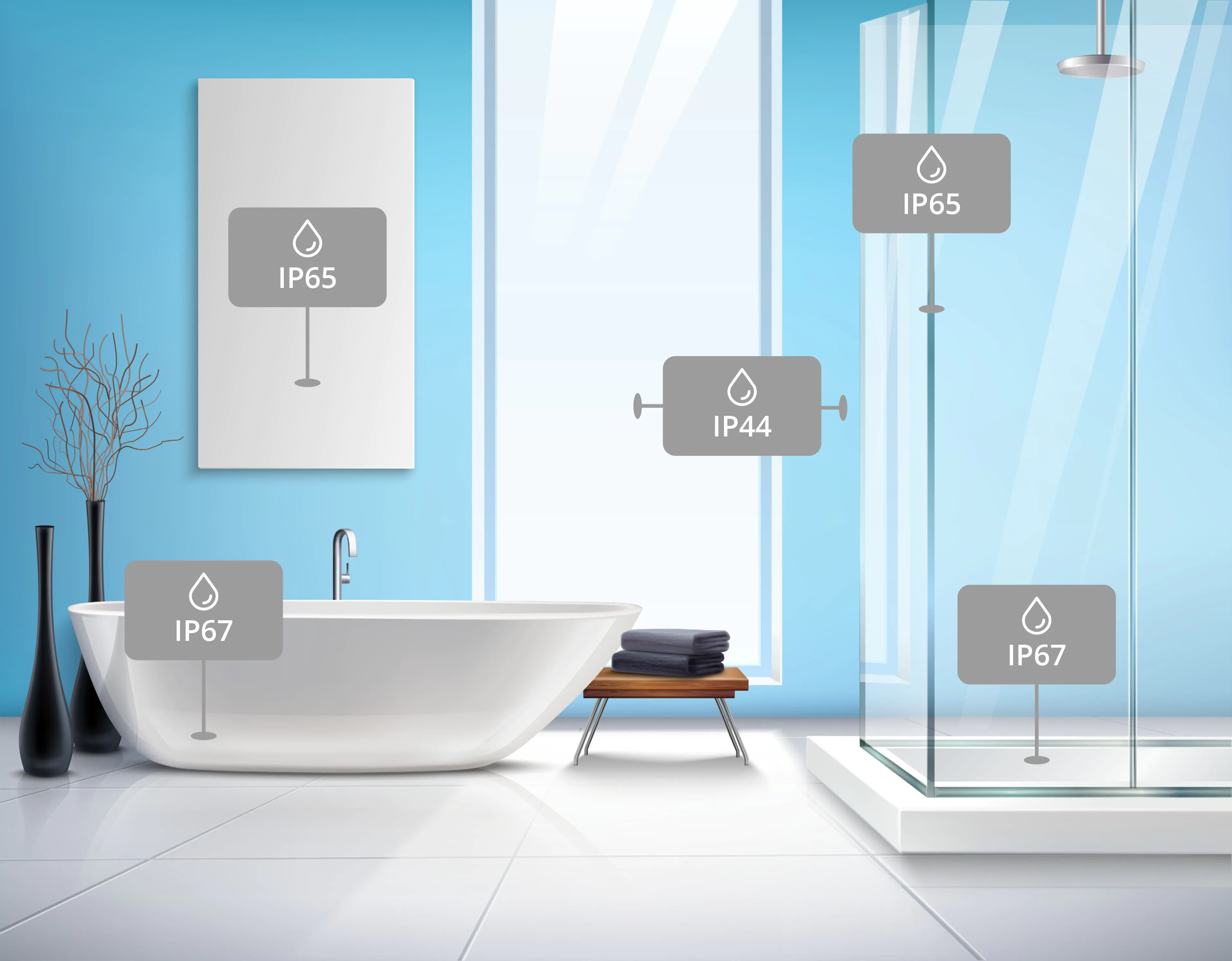 Im Badezimmer ist eine hohe Schutzklasse notwendig. (iStock/Macrovector)