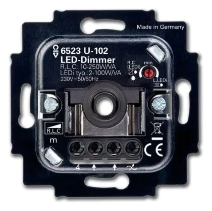 Der Busch-Jaeger 6523U-102 Rotary LED-Dimmer 6512-0-0334 verfügt über eine elektronische Sicherung. So ist garantiert, dass kein Kurzschluss entstehen kann und der Dimmer für LED-Lampen zudem überlastsicher ist.