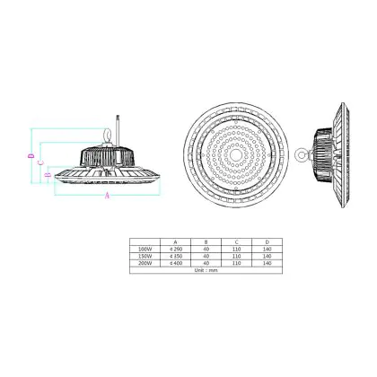 Beschreibung LED-Highbay 200W 22000lm 90D - 840 | IP65