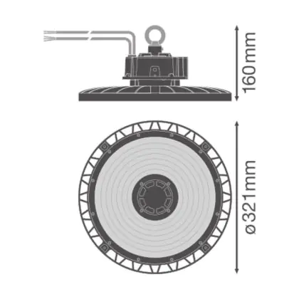 Beschreibung Ledvance LED Highbay Gen 5 Aluminium Schwarz 150W 26250lm 110D - 865 Tageslichtweiß | IP66 - 1-10V Dimmbar