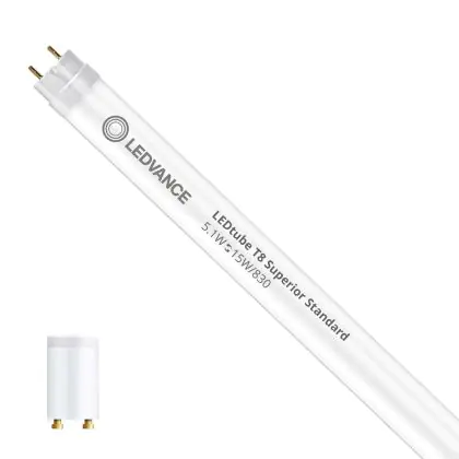 Ledvance LED Röhre T8 Superior (EM/Mains) Standard Output 5.1W 810lm - 830 Warmweiß | 44cm - Ersatz für 15W