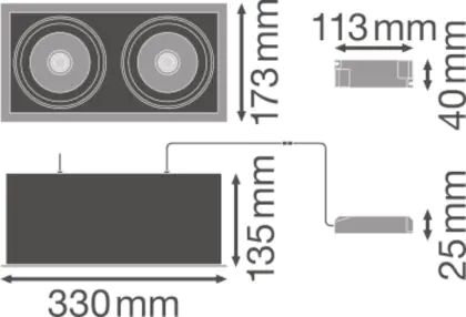 Der Ledvance LED-Spot Quadrat Multi schwenkbar Schwarz-Weiß 2x30W 5400lm 38D - 830 Warmweiß | Ausschnitt 320x160mm ist ein LED-Einbaustrahler, welcher Licht in der Farbtemperatur 3000K - Warmweiß ausstrahlt und durch eine lange Lebensdauer punktet. Die Einbauleuchte ersetzt konventionelle Halogenstrahler.