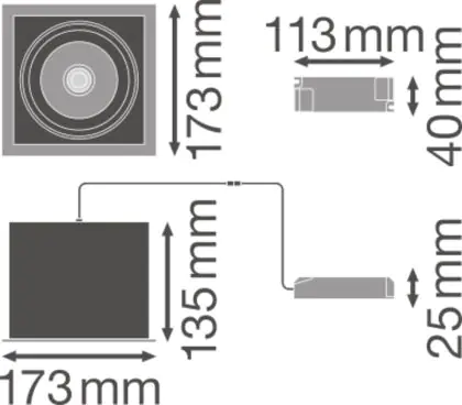 Beschreibung Ledvance LED-Spot Quadrat schwenkbar Schwarz-Weiß 30W 2700lm 36D - 830 Warmweiß | Ausschnitt 164mm