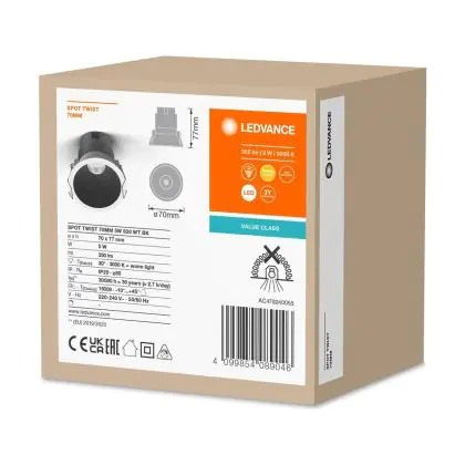 Wir von BeleuchtungDirekt haben mit dem LED-Einbauspot von Ledvance gute Erfahrungen gemacht. Daher bieten wir Ihnen für dieses Produkt eine Garantie von 3 Jahre an.