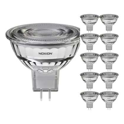 Die Mehrfachpackung 10x Noxion LED-Spot GU5.3 MR16 7.5W 621lm 36D - 827 Extra Warmweiß | Dimmbar - Ersatz für 50W ist eine effiziente GU5.3 LED-Lampe. Das Produkt der Marke Noxion ist der perfekte Ersatz für Ihre konventionelle Halogenlampe mit 50W und einem GU5.3-Sockel, bei dem die beiden Stifte einen Abstand von 5,3 mm zueinander haben. Die Abkürzung MR16 zeigt Ihnen, dass der Reflektor einen Durchmesser von 5 cm hat. Zudem strahlt das Produkt Licht in der Farbtemperatur 2700K - Extra Warmweiß aus und punktet durch eine lange Lebensdauer.