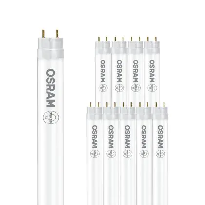 Die Mehrfachpackung 10x Osram LED Röhre T8 SubstiTUBE PRO (EM/Mains) Standard Output 5.4W 900lm - 840 Kaltweiß | 44cm - Ersatz für 15W ist eine effiziente LED-Röhre und der perfekte Ersatz für Ihre konventionelle Leuchtstoffröhre mit 15W und einem G13. Die Röhre hat eine Länge von 450 mm und einen Durchmesser von 26.7 mm. Zudem strahlt das Produkt Licht in der Farbtemperatur 4000K - Kaltweiß aus und punktet durch eine lange Lebensdauer.