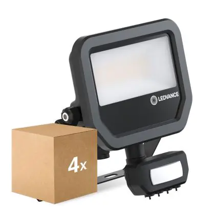 Mehrfachpackung 4x Ledvance LED-Scheinwerfer Aluminium Schwarz 17W 2400lm 100D - 840 Kaltweiß | IP65 - Bewegungs- und Lichtsensor - Symmetrisch