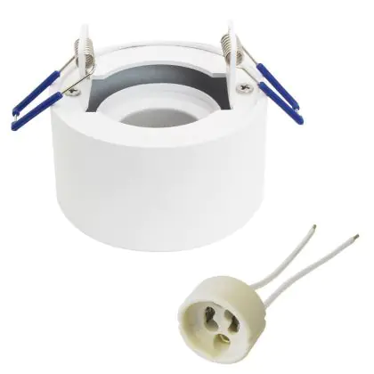 Das Gehäuse aus hochwertigem Aluminium hat einen Gesamtdurchmesser von 90 mm und einen Ausschnitt von 70 mm. In diesem wird das GU10-Leuchtmittel eingebaut. Die Fassung verfügt über eine Einbautiefe von 45 mm. Das Produkt ist nicht schwenkbar.