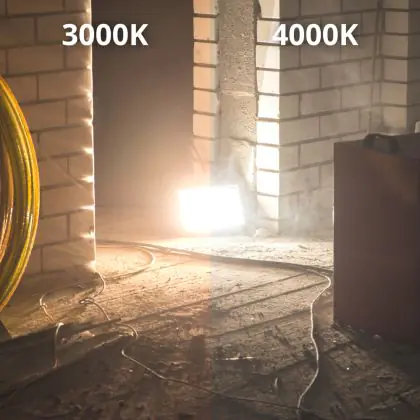 Das LED-Flutlicht kommt mit der Farbtemperatur 3000K - Warmweiß daher. Als Faustregel gilt: Je höher der Kelvinwert, desto natürlicher wirkt das Licht, je geringer desto mehr Rotanteile hat es.