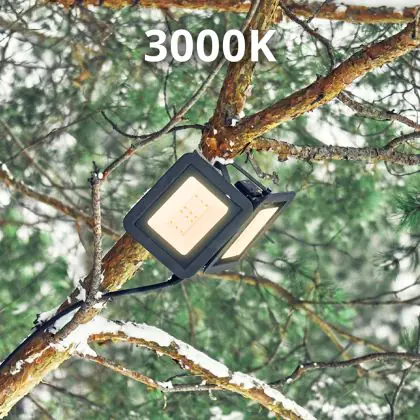 Das LED-Flutlicht kommt mit der Farbtemperatur 3000K - Warmweiß daher. Als Faustregel gilt: Je höher der Kelvinwert, desto natürlicher wirkt das Licht, je geringer desto mehr Rotanteile hat es.