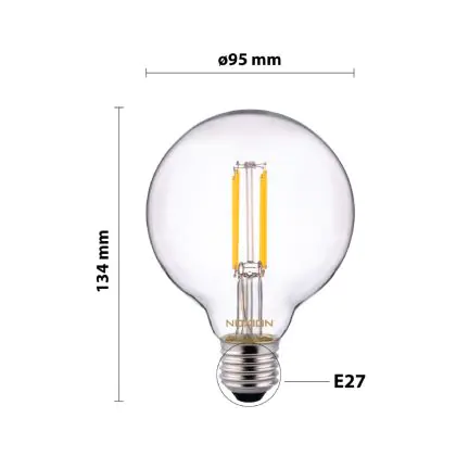 | Herstellername | Noxion Lucent Filament LED Globe G95 E27 220-240V 7W 806lm CRI80 2700K DIM (60W eqv.) | |