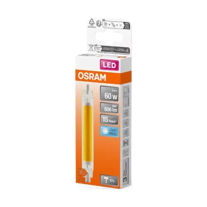 Die Osram LED Slim Line R7S LED R7S 118mm Klar 8W 806lm - 840 Kaltweiß | Ersatz Für 60W ist eine effiziente R7s LED-Lampe und der perfekte Ersatz für Ihre konventionelle Halogen-Stablampe mit W. Zudem strahlt sie Licht in der Farbtemperatur 4000K - Kaltweiß aus und punktet durch eine lange Lebensdauer.