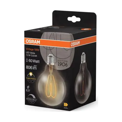 Die Osram Vintage 1906 LED E27 Globe Fadenlampe Klar 7.2W 806lm - 927 Extra Warmweiß | Höchste Farbwiedergabe - Dimmbar - Ersatz Für 60W ist eine effiziente E27 LED-Lampe mit Retrodesign und der perfekte Ersatz für Ihre konventionellen 60W Lampen mit E27. Zudem strahlt sie Licht in der Farbtemperatur 2700K - Extra Warmweiß aus und punktet durch eine lange Lebensdauer.