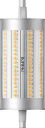 Die Philips CorePro LEDlinear R7s 17.5W 830 118mm | Dimmbar - Ersatz für 150W sind zweiseitig gesockelte Stablampen mit R7s-Sockel. Die LEDs sind der ideale LED-Ersatz für herkömmliche Halogenlampen und bieten dank ihrer besonderen Bauform rundum hochwertiges LED-Licht. Die CorePro-Lampe ist zudem dimmbar und arbeitet dank moderner LED-Chips besonders effizient.