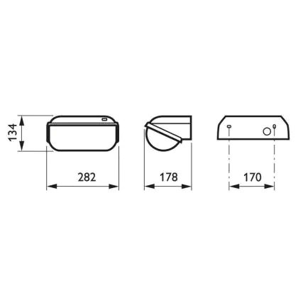Die Leuchte hat ein Gehäuse in dezentem Weiß. Es besteht aus ASA (Acrylnitril-Styrol-Acrylat-Copolymer), einem besonders robusten und auch witterungsbeständigen Material. Aus diesem Grund ist das Produkt auch als Außenbeleuchtung geeignet.