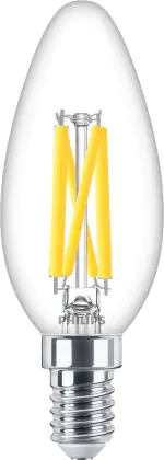 Die Philips MASTER LED E14 Kerze Fadenlampe Klar 3.4W 470lm - 922-927 Dim To Warm | Höchste Farbwiedergabe - Dimmbar - Ersatz Für 40W ist eine effiziente E14 LED-Lampe mit Retrodesign und der perfekte Ersatz für Ihre konventionellen 40W Lampen mit E14. Zudem strahlt sie Licht in der Farbtemperatur 2200K - 2700K Dim To Warm aus und punktet durch eine lange Lebensdauer.