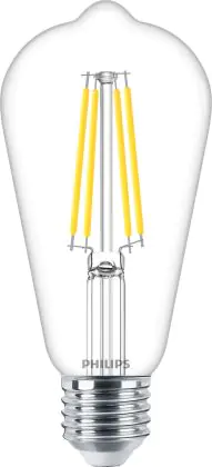 Die Philips MASTER Value LED Glühbirne E27 Edison Fadenlampe Klar 5.9W 806lm - 927 Extra Warmweiß | Höchste Farbwiedergabe - Ersatz für 60W ist eine effiziente E27 LED-Lampe mit Retrodesign und der perfekte Ersatz für Ihre konventionellen 60W Lampen mit E27. Zudem strahlt sie Licht in der Farbtemperatur 2700K - Extra Warmweiß aus und punktet durch eine lange Lebensdauer.
